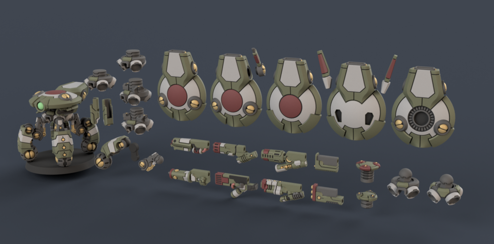 This is a koi equivalent quad drone that I put together for anyone wanting both a quad mech, and a drone equivalent to the koi. I think this scratches both itches, and has a fair amount of customization, from a handful of heads, to 3 or 4 leg variants, there should be a bit of everything from the koi here. (there's even an adapter that lets you use the lower half of the 'koma, and the upper half of the koi together in Quad mech harmony~